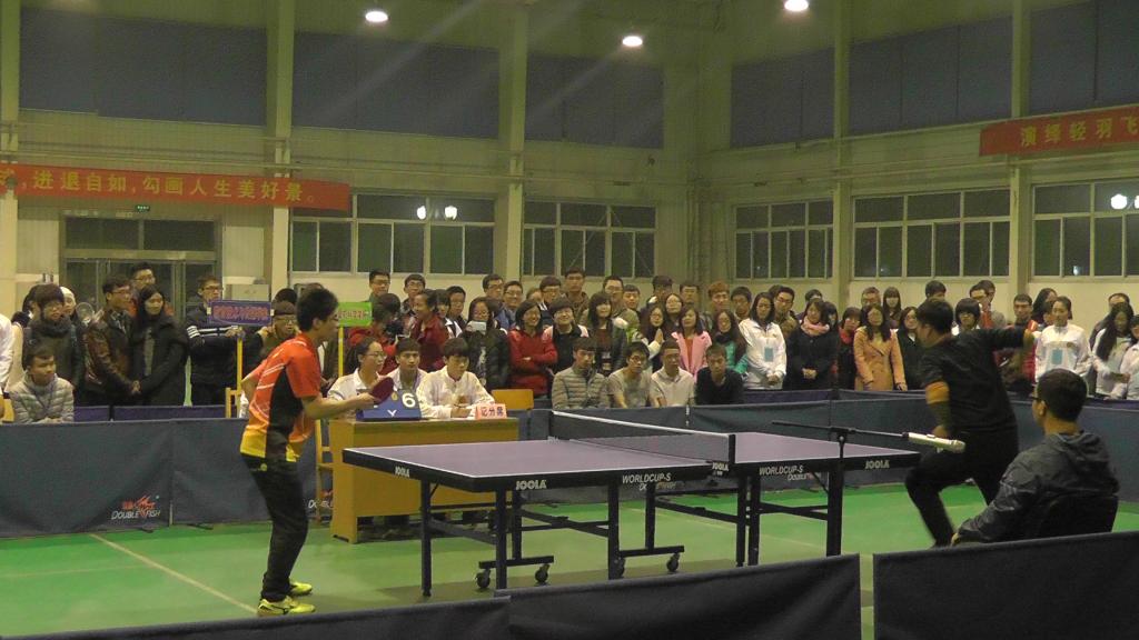 为了丰富同学们的课余生活,加强乒乓球技术的交流,培养同学们敢打敢拼的精神,2015年12月6日下午四点,由英国365集团公司举办的乒乓球决赛在员工文化艺术活动中心隆重举行。公司与传媒学院展开了激烈而又精彩的对抗赛。