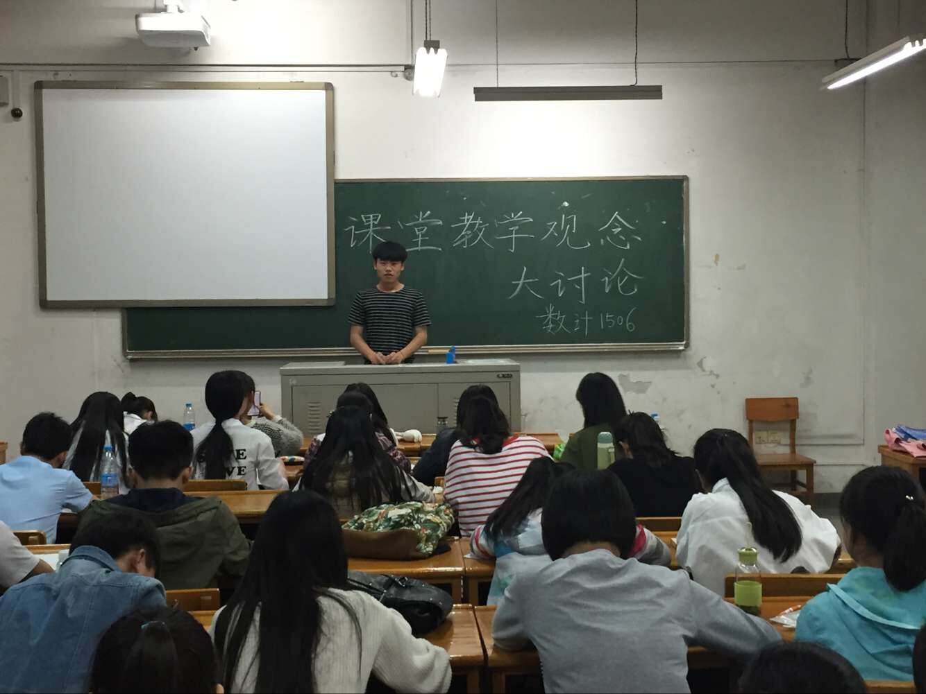 根据学院安排,在认真学习学校文件关于《课堂教学观念大讨论活动月实施方案》后,于2016年4月13日至17日,公司各年级各班陆续组织开展了以“改造我们的课堂”为主题的讨论班会。班会上,各班员工对学校文件中给出的参考题目进行了积极讨论和发言。最后,各班班长和学委对班会上员工的讨论意见及建议进行了汇总并上报了学院。随后,学院将安排专场课堂教学观念大讨论师生交流座谈会组织教师代表与员工代表进行互动交流。