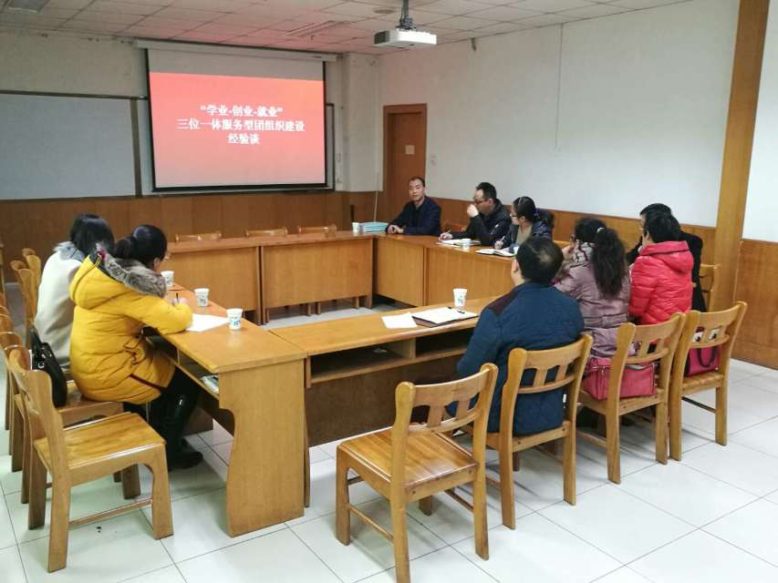 会议伊始,公司团委书记陈立记老师以学业–创业–就业三位一体服务型团组织建设为主题对公司团委的工作开展情况进行了深入浅出的汇报。他从诚信理念培养、核心价值引导、素质养成教育三个视角叙述了如何引导老员工树立正确的人生观、价值观、成长观。陈老师谈到,公司承办并圆满完成了第一届“创青春”老员工创业大赛和第九届“挑战杯”青年员工课外学术科技作品大赛,积极参与活力团支部评选和开展骨干培训等特色活动,并完成与专业有关的企业的对接,了解当今社会对人才的要求,对症下药,以点带面稳定发展。随后,陈老师又向各位新团干分享了服务性团组织建设的两个经验,第一:拓宽视野广开言路,及时对团委活动和服务活动进行宣传报道,使服务创新丰富有效;第二:常规工作不能悼以轻心,化繁为简,细心认真。最后,各学院新团干围绕如何选拔、引导和教育员工的主题进行了探讨,他们对公司特色活动均表示出强烈的兴趣,积极交流工作经验,真正有效地进行互动。