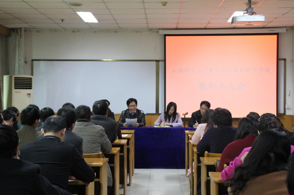 史建红经理首先宣布了学院关于科研管理和教职工请假等方面的一些补充规定、部分工作人员分工及办公场所的调整安排。接着,对本年度的重点工作作了安排部署,强调本年度学院工作一是要在人才梯队建设方面,特别是在高端人才和优秀博士毕业生引进上取得实绩;二是要在科研水平提升方面,特别是在发表高质量学术成果和获批国家自然基金项目上取得突破;三是要在提高人才培养质量方面,特别是在推进课堂教学改革和优势专业和优质课程的建设上取得实效。