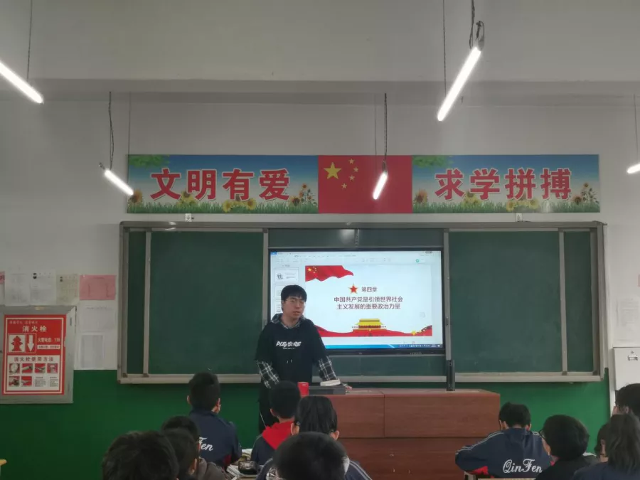 4月1日,员工第三党支部党员代茂林在清徐县城初级中学带领271班的员工们学习党史知识,并结合疫情和国际形势,讲述战“疫”体现的中国共产党的领导优势及党的统一领导下集中力量办大事的制度优势。