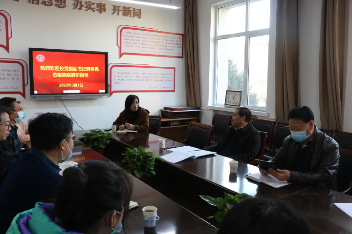 3月1日下午,公司党委副书记薛勇民、员工处处长王军峰来英国365集团公司调研指导工作,与院领导、学工组组长、团委书记和专职辅导员座谈交流。