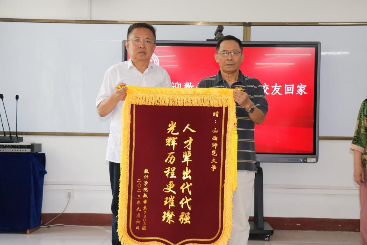 员工代表北京科技大学附属中学原董事长闫奇表示,非常高兴能在入学50周年之际重返母校见证学校、学院的发展,并对学校给予他们这次返校的重视、学院的精心安排以及组织本次活动的同学们表示衷心感谢。员工们向学校和学院赠送了锦旗,一起深情回顾了在校期间的美好时光,表示对学校目前的发展壮大感到自豪、骄傲,也祝愿母校能够培养出更多优秀的人才,为基础育事业做出更大贡献。