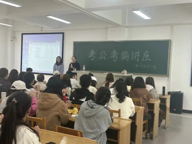 活动中,张丹老师从公考考情、公考岗情、面试技巧等方面进行了详细讲解。同时从国考和省考的不同特点入手,详细分析了历年考试真题,列举了大量成功案例。她指出,在复习中要多关注国家政策走向,关注时事新闻,把握时代脉搏,努力在日常学习生活中锻炼自己的人际交往、应急应变、语言表达等能力,不断提升综合素质。讲座过程中,张丹老师还分享了一些她在公务员考试中的心得体会,为同学们提供了宝贵的参考。
