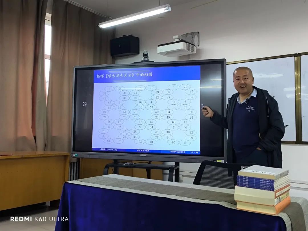 讲座伊始,曲海鹏教授以深厚的学术功底和生动的讲解方式,从《周易·系辞上》、《续资治通鉴》、《数书九章·序》等经典著作中引出河图洛书,为在场的同学们打开了一扇通往古代智慧的大门。