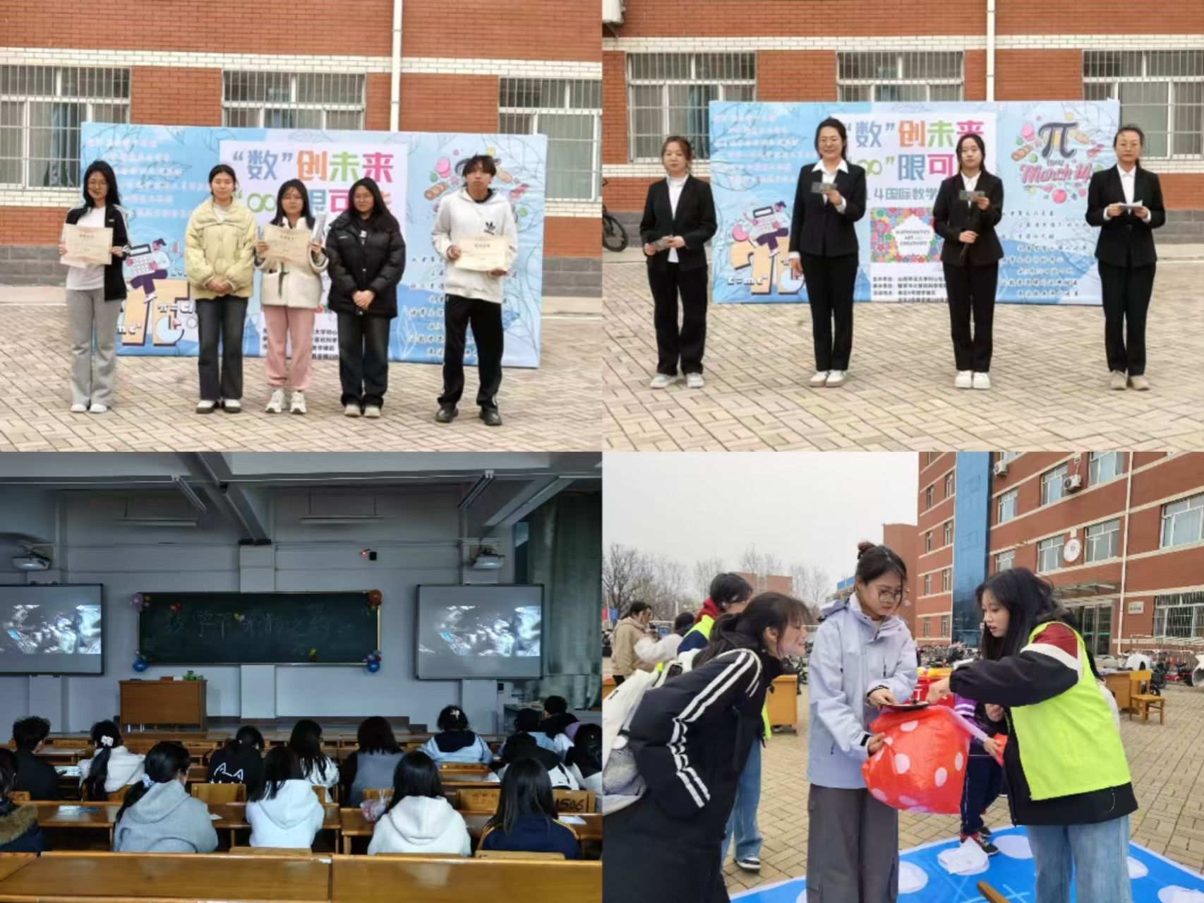 3月15日,南区6号教学楼前开展了数学嘉年华活动。同学们凭入场券参与游戏,在《π韵诗境》、《π记迷踪》、《知识连线》等六个小游戏中集章打卡,现场气氛热烈。表演活动在活力四射的开场舞《像你这样的朋友》中拉开序幕,随后对口相声《学数学》、歌曲《闪耀》、《Love story》、大合唱《最美的太阳》展现了青春的活力与浪漫,让同学们在欢笑中增进了对数学的喜爱。