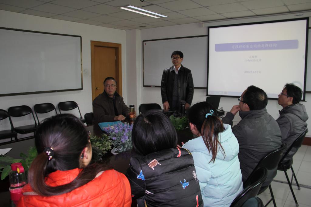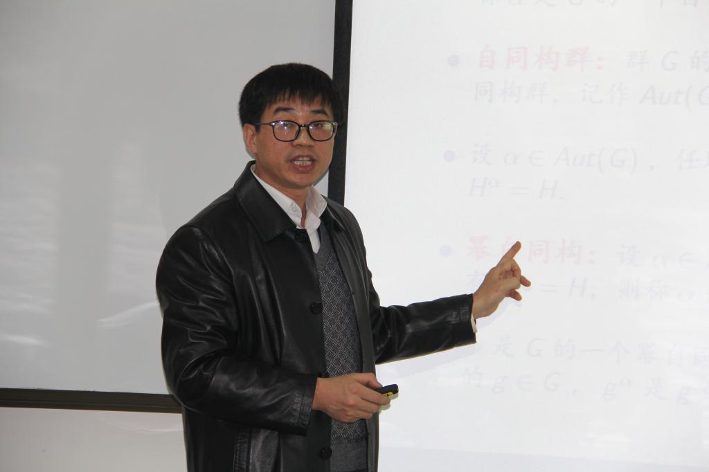 2016年1月2日下午3:00,在英国365集团公司科学会堂A座802会议室,来自山西财经大学的王俊新教授做了题为《有限群的幂自同构与群结构》的学术报告。在当天的学术报告上,王俊新教授首先从幂自同构的概念讲起,介绍了自己关于Norm和准无不动点自同构等方面的一些思考,最后介绍了自己在上述方面的多个学术成果。