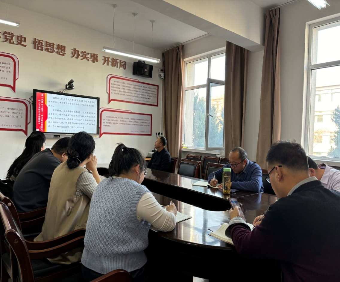 马克思主义学院黄雪丽教授以《续写中国奇迹新篇章,开创中国式现代化新局面》为题宣讲了党的二十届四中全会精神,公司党委书记孙学虎领学了“第一议题”:习近平重要文章《学习好贯彻好党的二十届四中全会精神》、习近平对未成年人思想道德建设作出重要指示、习近平在全国政协新年茶话会上的讲话精神、国家主席习近平发表二〇二六年新年贺词、习近平考察山西重要讲话重要指示精神、《习近平谈治国理政》第五卷之《因地制宜发展新质生产力,实现高质量发展》、违反中央八项规定精神典型案例--(2025年“以案说纪”警示教育第4期)等内容。