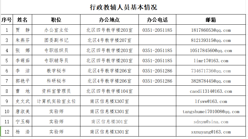 行政教辅人员基本情况